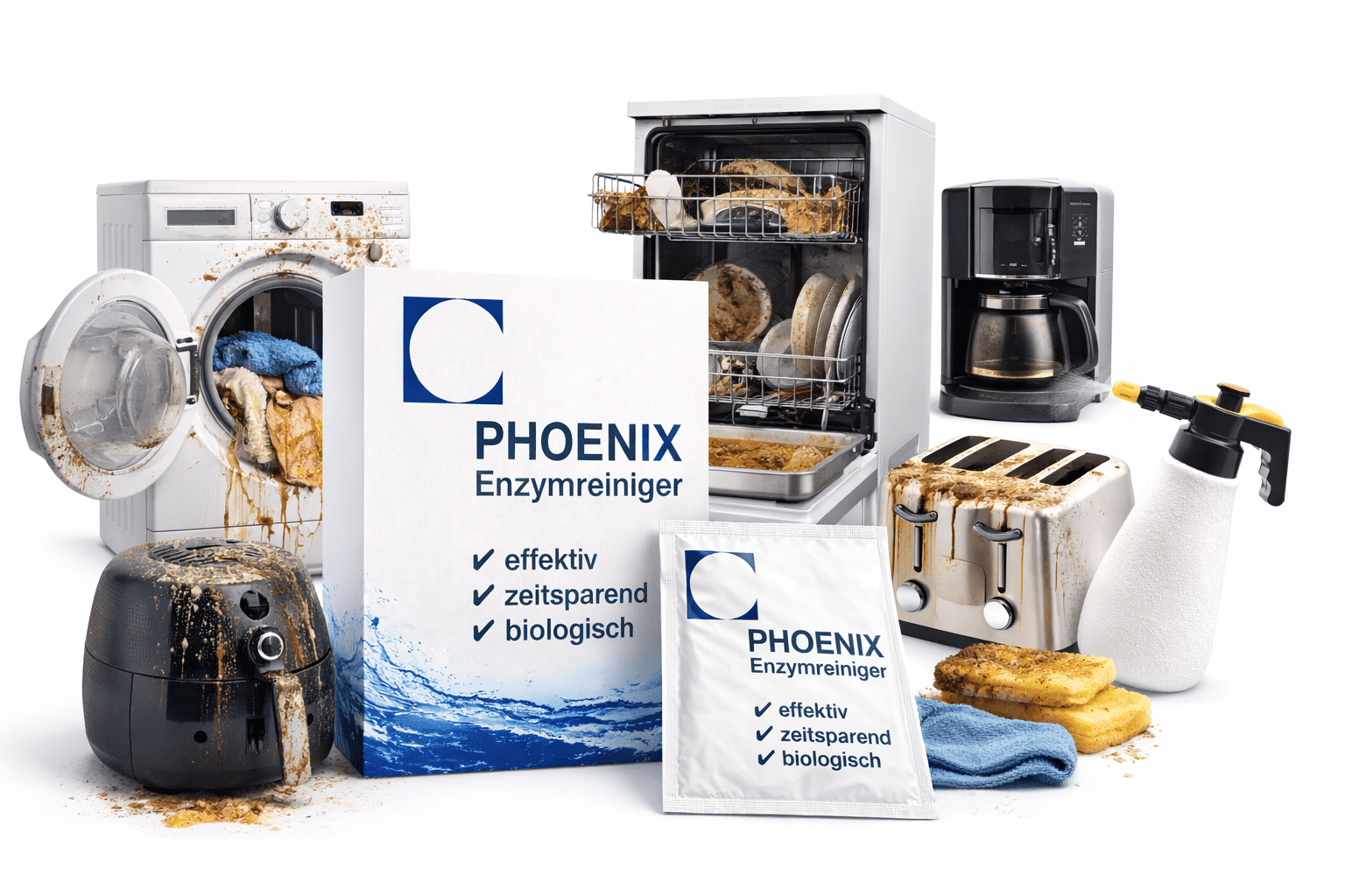 Mit dem Phoenix Enzymreiniger können Sie auf viele klassische Maschinenreiniger verzichten, darunter: