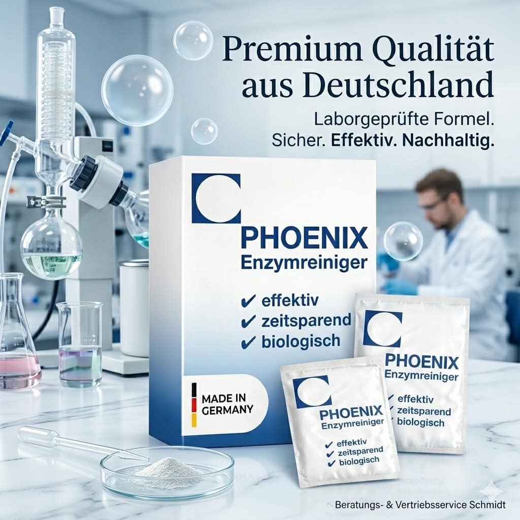 {"@type":"Question","name":"Wirkt PHOENIX auch bei jahrelang eingetrockneten Ölflecken?","acceptedAnswer":{"@type":"Answer","text":"Ja. Bei sehr alten Flecken empfehlen wir eine stärkere Dosierung (20 g auf 1 Liter) und eine Einwirkzeit über Nacht mit Folie-Abdeckung."}},