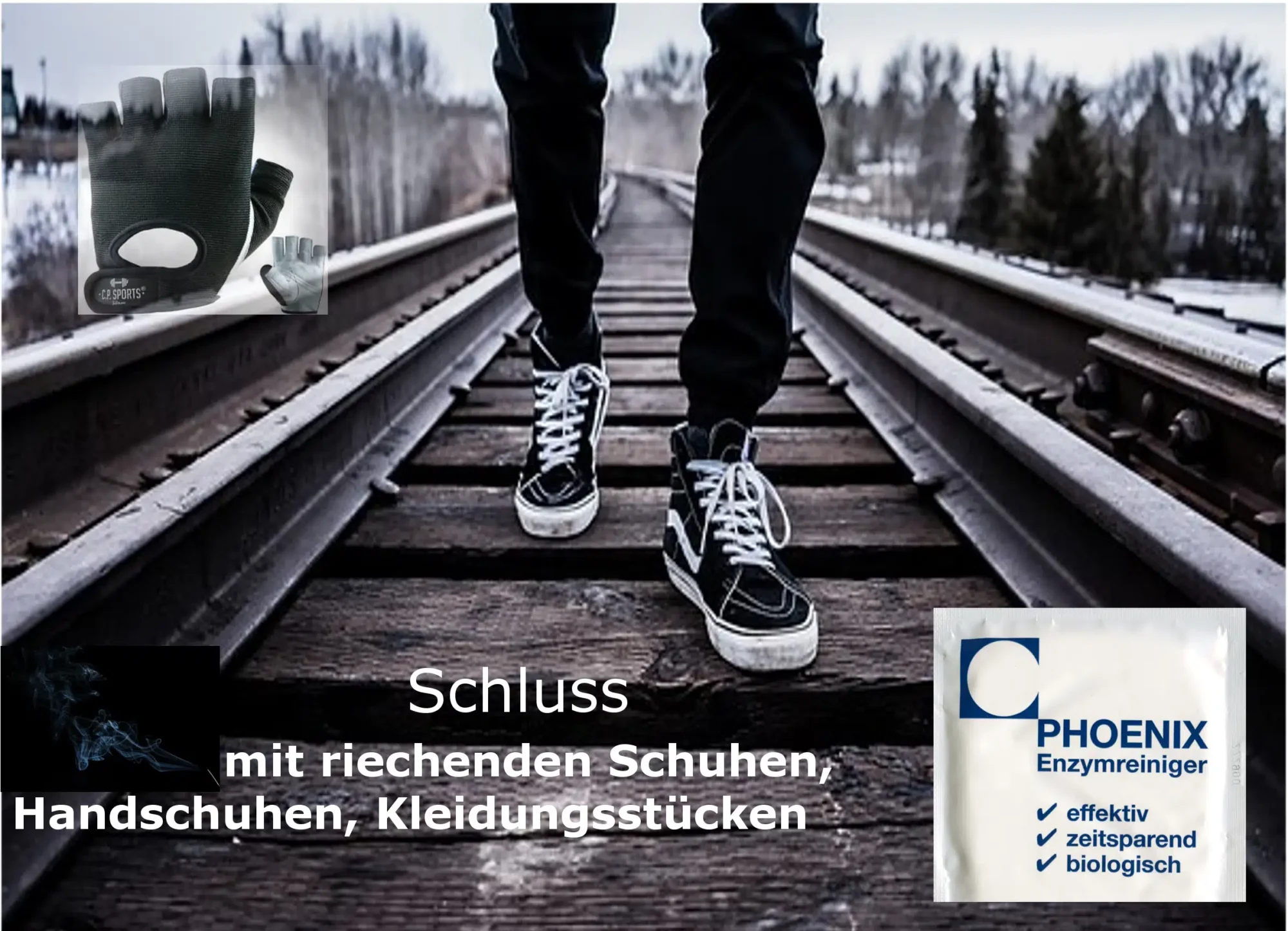 Ihre Sporttasche, Zubehörtasche, Trainingshandschuhe, Boxhandschuhe, Schutzkleidung beim Eishockey, American Football oder Fußball können Sie alles mit unserem Phoenix-Enzymreiniger Fußgeruch Schweißfuß einsprühen und von unangenehmen, ungewünschten Gerüchen befreien.